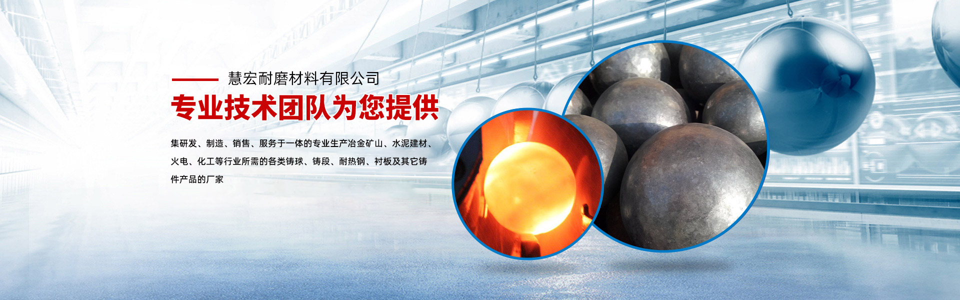 慧宏耐磨是一家集研發(fā)、制造、銷(xiāo)售、服務(wù)于一體的專(zhuān)業(yè)生產(chǎn)冶金礦山、水泥建材、火電、化工等行業(yè)所需的各類(lèi)鑄球、鑄段、耐熱鋼、襯板及其它鑄件產(chǎn)品的廠家。